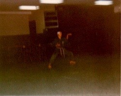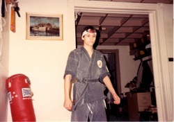 MeYoungBB When the space at Gannon was not available, training took place in my instructor’s apartment. This picture shows me as a young black belt in the mid to late 80s. No matter where my instructor moved, one room was always converted into a dojo. I can’t imagine his neighbors were pleased with the noise.